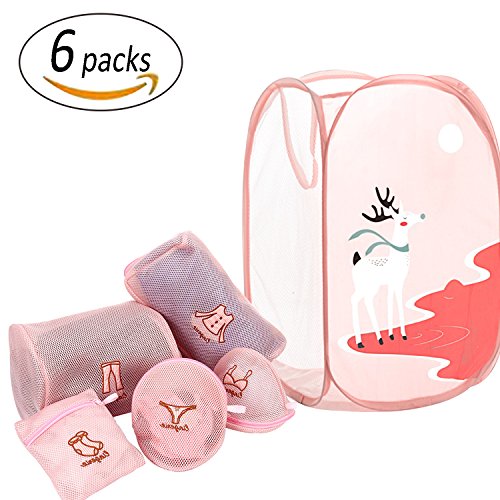REVEW 6PCS Laundry Bags Foldable Pop Up Mesh Washing Laundry Basket for Washing Machines, Drying Machines, Travel Laundry Bags for Coat, Pants, Underwear and Sock