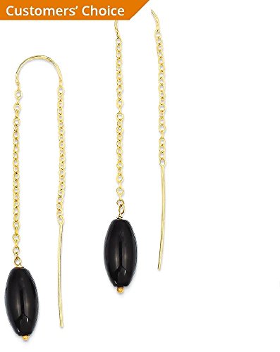 -. Title : ICE CARATS 14k Yellow Gold Black Onyx U Tassel String Threader Earrings Drop Dangle Fine Jewelry Gift Set For Women Heart