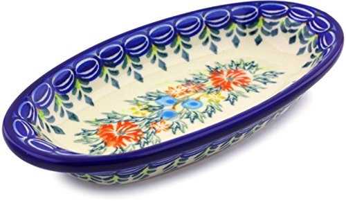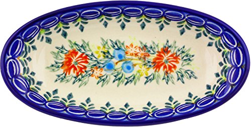 Studio : Boleslawiec Publisher : Boleslawiec Product Description Polish Pottery 7-inch Condiment Dish Red Cornflower And Blue Butterflies Theme - Signature UNIKAT Dimensions: 3¾" wide, 7¼" long, 1¼" high Capacity: 6oz Polmedia Polish Pottery Stoneware is: * Hand crafted and hand painted in Boleslawiec, Poland * Microwave safe, dishwasher safe, oven safe up to 480 F, freezer safe * Lead and cadmium free * Crack and chip resistant * Intended for everyday use, easy to clean * Highly collectable About Polish Pottery Polish pottery is known for its versatility in the kitchen and on the table. It is safe for use with food in the microwave, freezer, oven and dishwasher. Polish stoneware is resilient to abrasives making it durable and resistant to scratching or chipping. It distributes heat evenly for perfect baking and is also nonstick for easy clean-up, making it easy to care for. The bright patterns never fade, and are offered in thousands of variations to mix and match. It is this combination of function and beauty that makes Polish pottery so appealing. The pottery is fired in electric and gas kilns at temperatures exceeding 2200 degrees Fahrenheit. This results in a stoneware that is meant to resist aging and provide lasting beauty that stands the test of time. Polish stoneware is lead and cadmium free. Polish Pottery is hand crafted and hand painted in the Boleslawiec region of Poland. This region is famous for its naturally found white clay which artisans have used for centuries to craft this durable and beautiful stoneware. Each piece of pottery is carefully formed and painted by hand to ensure that exceptional attention to detail is paid to each piece. The most beautiful and intricate patterns are called UNIKAT patterns. These patterns bear the artist's signature. 0