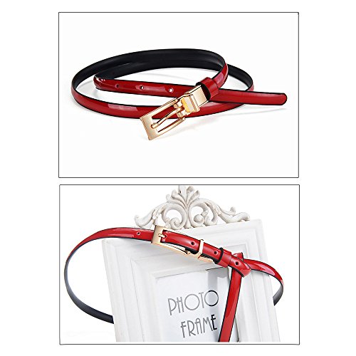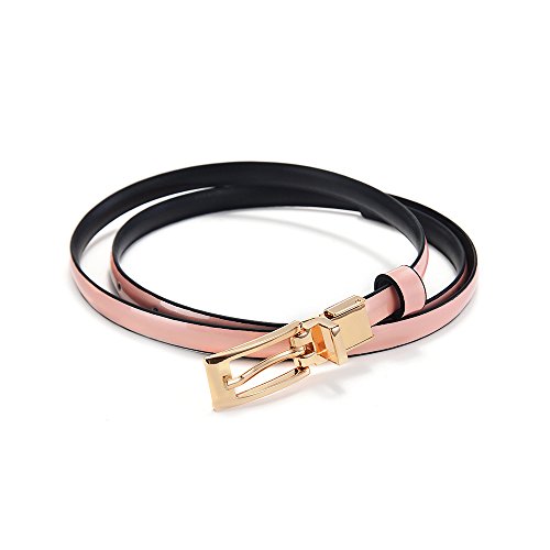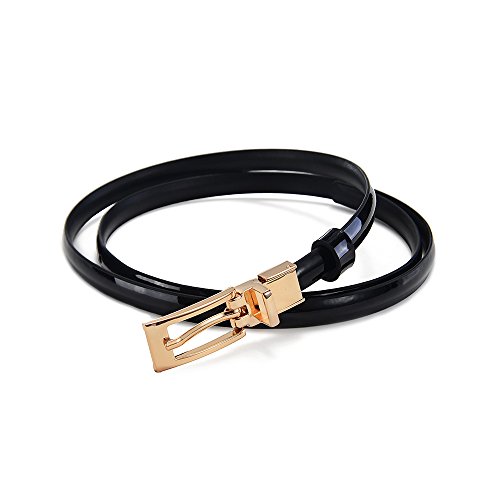 (Ya Jin)/Accessories/Belts Buckles/DIRECT FROM USA/Ya Jin Women Skinny Leather Belt with Gold Polished Square Belt Buckle