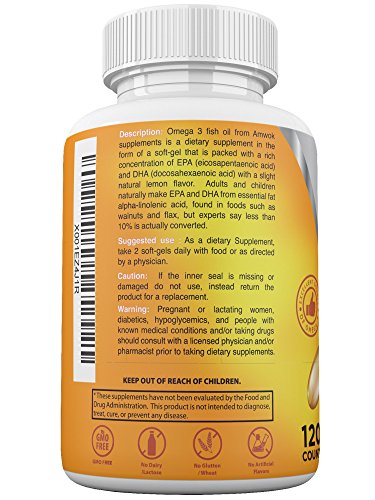 Not all fats are unhealthy; Omega 3 EPA & DHA fatty acids are one of the "good" types of fatty acids. Fatty acids from food such as cold water fish is the best source of Omega 3 Fish Oil. However, if you do not like to eat fish, dietary supplements are an alternative source of EPA & DHA Omega-3 fatty acids. Omega 3 fatty acids may provide heart health benefits, may lower your blood pressure, and / or may reduce inflammation. Many people claim that they notice a difference in how they feel. Your body can't make these types of fatty acids, you obtain them through foods you eat or by taking it in a supplement form. Our Omega 3 Fish Oil contains a rich concentrated formula of EPA & DHA with a slight lemon flavor for a better taste. Our Omega 3 fish oil contains 120 soft-gels packed in a HDPE sealed white bottle. If you have a family member or loved one that you know could benefit from this supplement, go ahead and click the "Add to Cart" button now and share the goodness!Feature