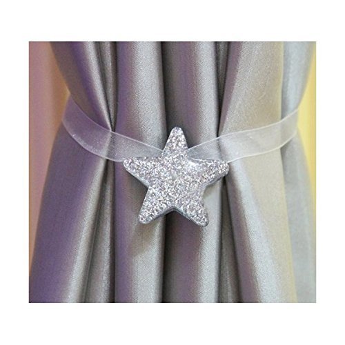 Shinywear Cute Bling Star Magnetic Curtain Ropes Ribbon Decorative Tiebacks Holdbacks Pack of 2 (Silver)