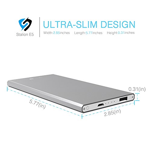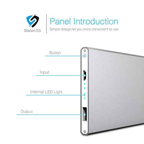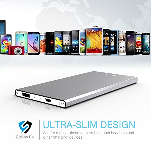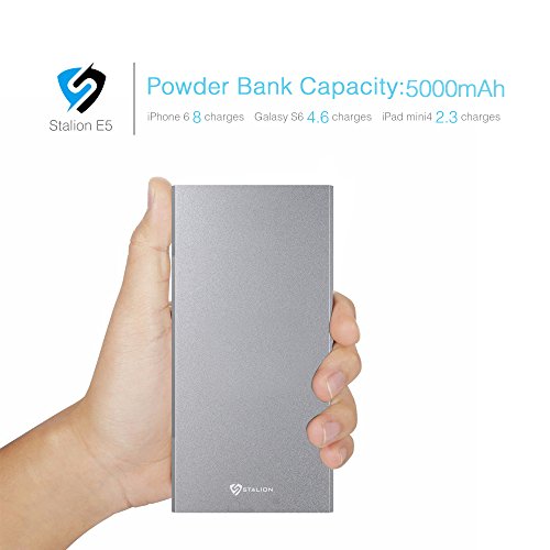 -. Binding : Wireless Phone Accessory -. Brand : Stalion -. Color : Quick Silver -. EAN : 0617762945571 -. Feature : Featuring Stalion Smart Technology which communicates with your connected devices to enhance both compatibility and charging speed (up to 2 Amps). / Have your self an extra full charge or an additional 9 hours of Talk time for your iPhone 6 6s Plus, 5s 5C, Samsung Galaxy S6 S6 Edge+, Galaxy Note 5 and with most other smartphones you can benefit a 1 full charge or 90+ hours of music or audio playback. / A stylish lightweight designs provides easy fit into your pocket or bag. / Constructed with Grade A cells and premium microchips to ensure the highest and best quality. Charge time: 3-4 hours. / Your package includes 1x Stalion Saver M5 5000mAh external power bank, Micro USB cable, and 24 Month Stress free warranty. (Apple Adapters- 30 pin and Lightning, NOT Included) -. Label : UnAssigned -. Manufacturer : UnAssigned -. MPN : X000X6APB1 -. PackageQuantity : 1 -. PartNumber : X000X6APB1 -. ProductGroup : Wireless -. ProductTypeName : PHONE_ACCESSORY -. Publisher : UnAssigned -. Studio : UnAssigned -. Title : Stalion Saver 5000mAh E5 Power Bank for Smartphones, Quick Silver -. UPC : 617762945571