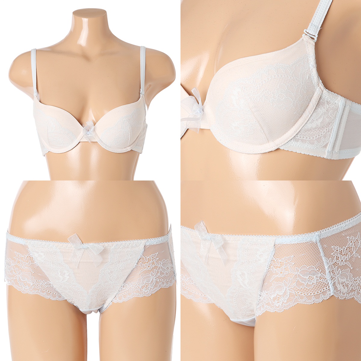 | 소재 | 브라: 겉감) 나일론 60%, 폴리에스터 30%, 폴리우레탄 10% 안감) 면 100% 팬티: 나일론 85%, 폴리우레탄 10%, 폴리에스터 5% 안감) 면 100% |