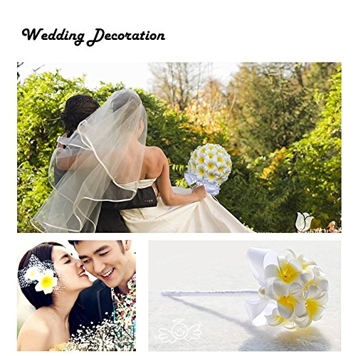 Ewandastore 100 Pcs Diameter 3.2 Inch Artificial Plumeria Rubra Hawaiian Foam Frangipani Flower Petals for Weddings Party Decoration(Beige)