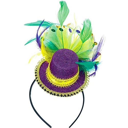 -. Title : Amscan - Mardi Gras - Feathered Mini Hat Headband