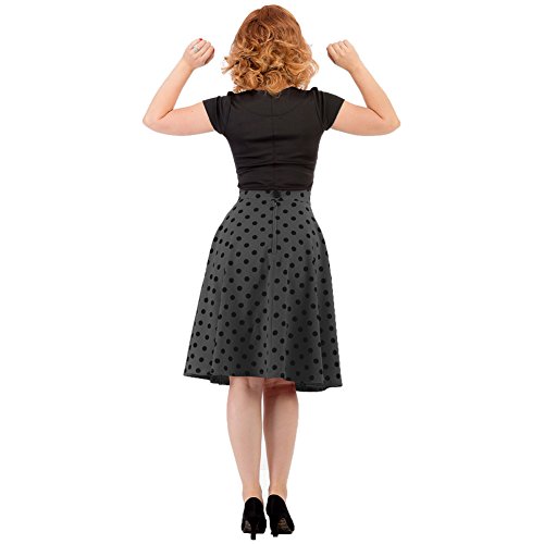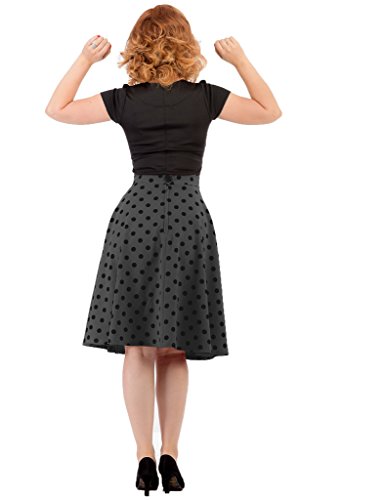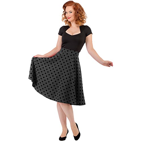 Studio : Steady Clothing Publisher : Steady Clothing Binding : Apparel Product Description Polka Dot Thrills Skirt Grey Women's By Steady Clothing. Flutter around like Lucille Ball in this flirty skirt. Made with stretchy draping fabric, it's one of those basic circle skirts every good retro aficionado should have! Universally flattering with its cut and fabric, it can really fit anybody. For those worried about length, throw on a pair of heels! No matter what your height, this skirt looks fabulous even with a pair of cute flats! You'll just want to twirl around all day! Has a button and zipper for closure. Material: 80% poly 15% rayon 5% spandex. Made in the USA 0