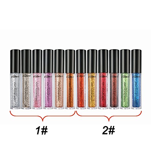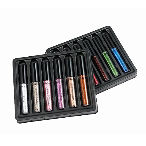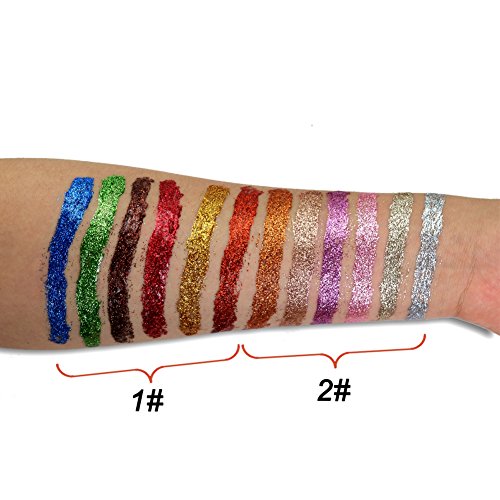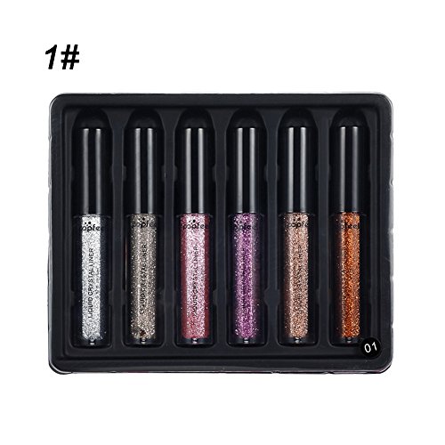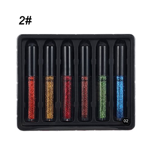 -. Feature : Perfect Makeup: Uniquely lightweight, water-infused texture, it glides on effortlessly, thin brush draws precise lines of glitter on the eye / Effect: Long Lasting Maintenance, Water-tight, Metallic Glitter Sparkling Effect with intense color. / Glitter Shimmer: Long-wearing sparkle eyeliner lavishes eyes with incredible glitter and shimmer. / Striking Color: 10 different colors, ideal for Birthday Party, Cosmetic Show, Live Show, Prom Night, Dance Party, and Wedding Makeup. With unique package, would be the perfect gift to your friends, bestie, families. / Include: 6PCS Liquid Glitter Eyeliner.