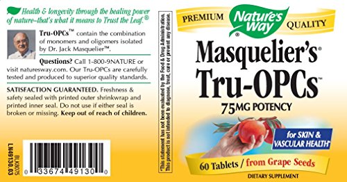 ReleaseDate : 2010-05-13 Studio : Nature's Way Publisher : Nature's Way Binding : Health and Beauty Product Description Masquelier's Tru-OPC's 75mg 60 TabletProduct Description Tru-OPCs contain the combination of monomers oligomers isolated by Dr. Jack Masquelier. This potent antioxidant strengthens collagen, connective tissues and vascular walls.