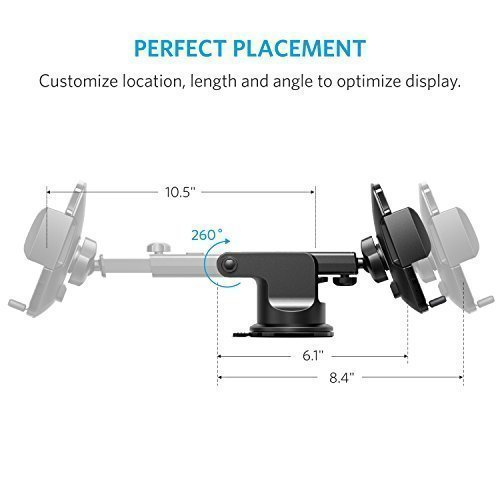 An extendable arm providing an extra 2.4 inch reach with a 260° arc and a highly-flexible ball joint allow you to easily adjust your phone to the perfect angle.