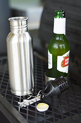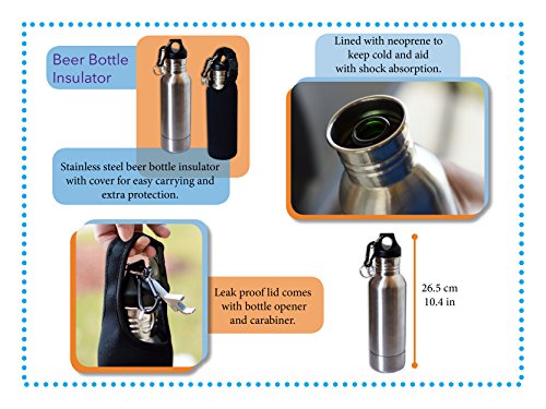 Stainless Steel Bottle - Best for Keeping Beverages Cold - Fits 12oz Bottles - Comes With Bottle Opener And Neoprene Carrying Case - Stainless Steel Bottle Insulator - Perfect Gift