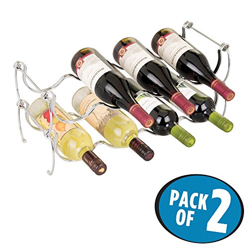 mDesign Stackable Wine Storage Rack for Kitchen Counter Tops - Holds 8 Bottles, Chrome