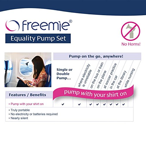 The Freemie Equality Manual breast pump is the only manual pump in the world that will allow you to pump your milk with your clothes on! With the included patented Freemie Collection Cups and the easy-pull compact Equality pump, this set offers Unparalleled Versatility and ease of use! No Electricity Necessary! No Privacy Necessary! No Undressing Necessary!Feature