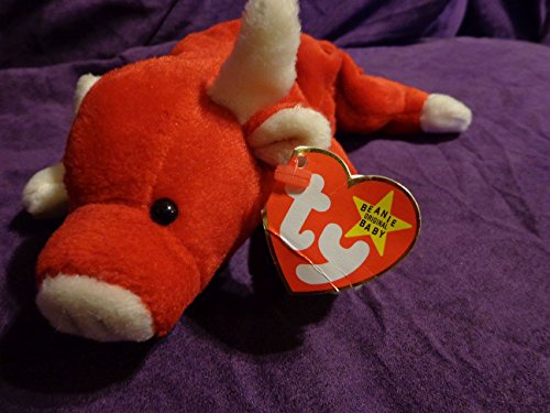 -. Title : RARE Retired "Snort the Red Bull" Ty Beanie Babies w/near MINT tags, PVC Pellets, No # Stamp, Errors