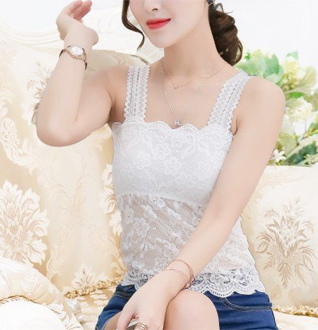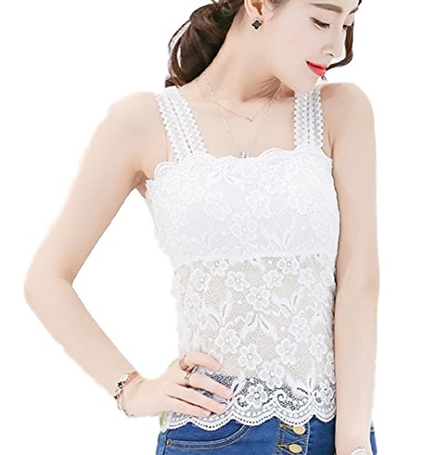 -. Title : 胸パッド付き レースがかわいく 可憐 に見える ノースリーブ エレガント タンクトップ ブラー隠し【スタイルⅡレディース フリーサイズ 白 ホワイト 】