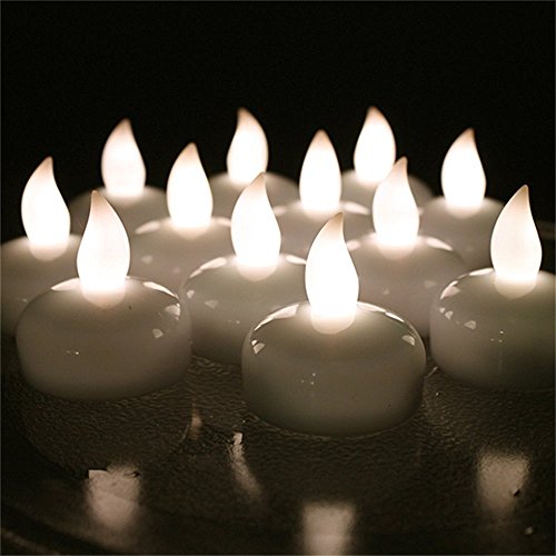 12 PCS Waterproof Tea Lights, AGPtek Battery Operated Flameless Floating Candles for Wedding Party Decoration - Warm White