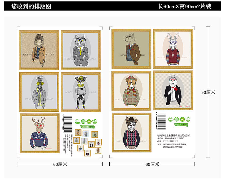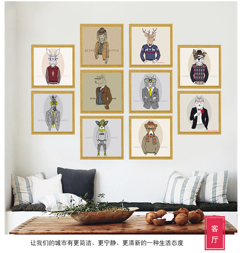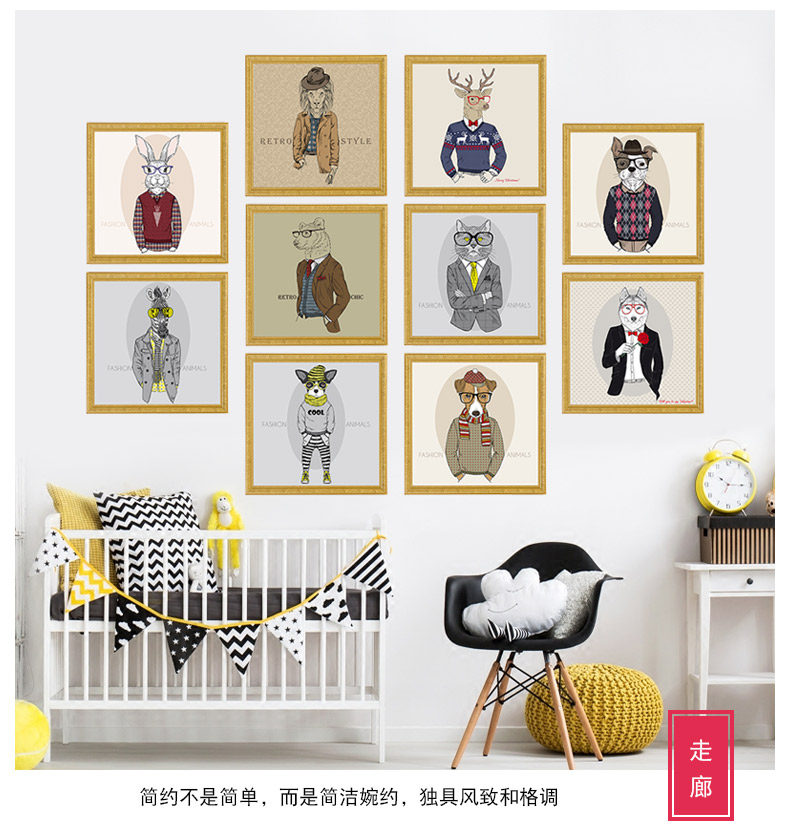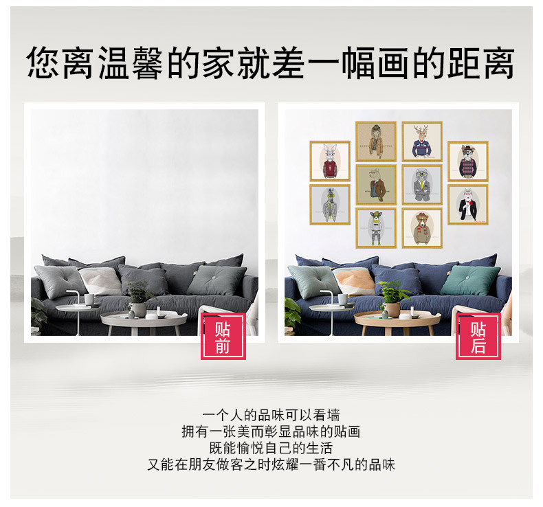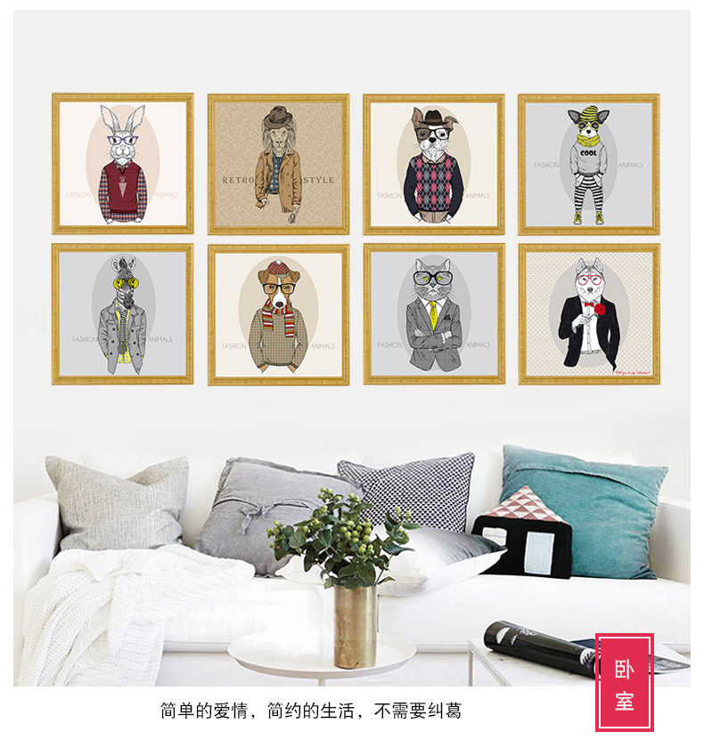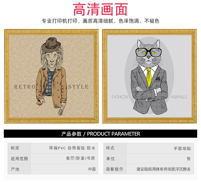 创意贴画卧室装饰品床头贴画动物墙贴欧式个性墙纸相框画自粘墙贴