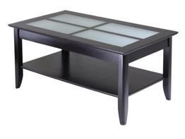 -. Feature : Features Rectangular coffee table from Winsome Wood for living room or bedside use Wood construction with dark espresso finish; 4-pane frosted glass top Lower shelf for storing books, magazines, remote controls, or decorative items Hardware and tools included for necessary home assembly; matching TV stand, phone stand, and end table available separately Measures 40 inches wide by 23 inches deep by 18 inches high
