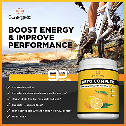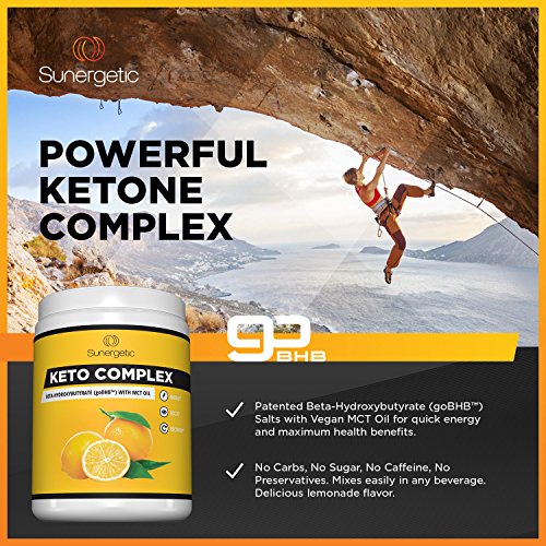 Sunergetic's Keto BHB Salts Supplement includes 9 grams of patented beta hydroxybutyrate BHB Salts per serving with 4 grams of non-GMO and Vegan MCT Oil Powder.