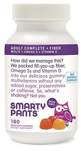 -. Title : SmartyPants Adult Complete plus Fiber: Multivitamin, Omega 3, Vitamin D, No Added Sugar, 180 count by SmartyPants Gummy Vitamins