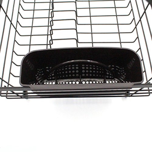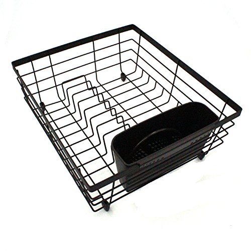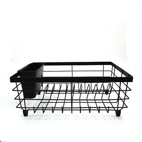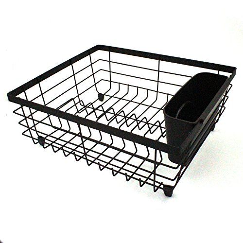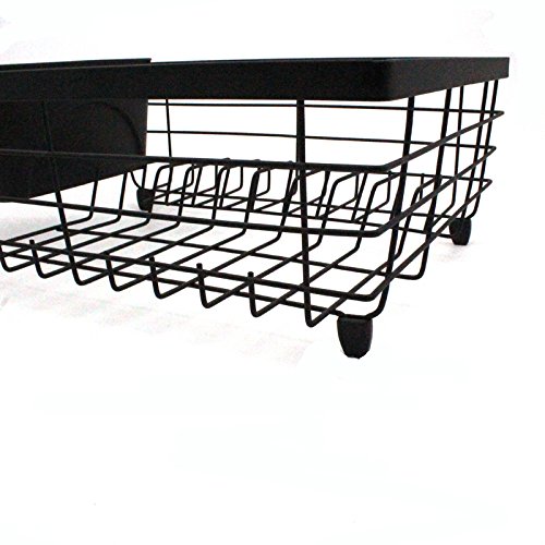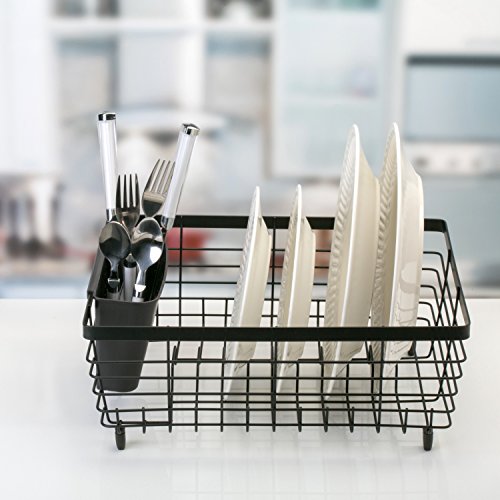 Black Flat Wire Dish Drying Rack with Utensil Holder