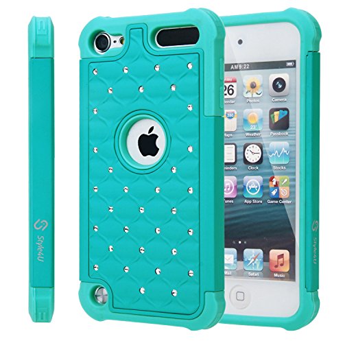 Introducing Style4U Slim Fit Bling Hybrid Armor Case for iPod Touch 5 / iPod Touch 6 Dual Layer Protection This sturdy form fitted case is constructed from high quality polycarbonate (PC) and soft silicone skin to provide maximum protection. It will protect your phone from bumps, drops and other mishaps.
