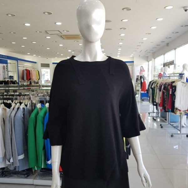 스팽글 프리 칠부소매 니트티-CA7F8-WSP020-블랙
