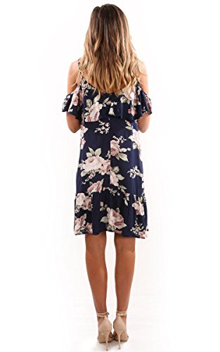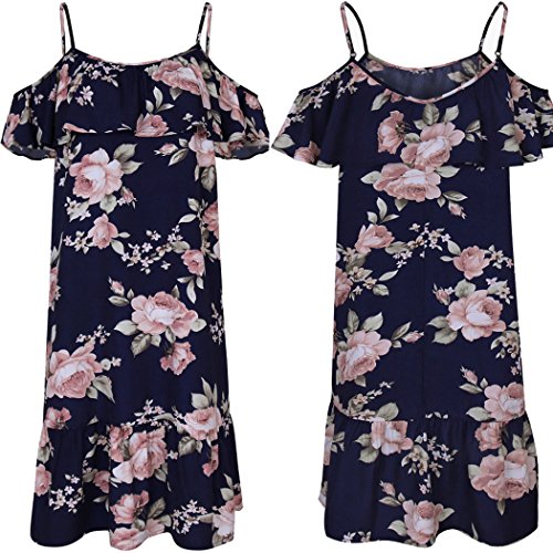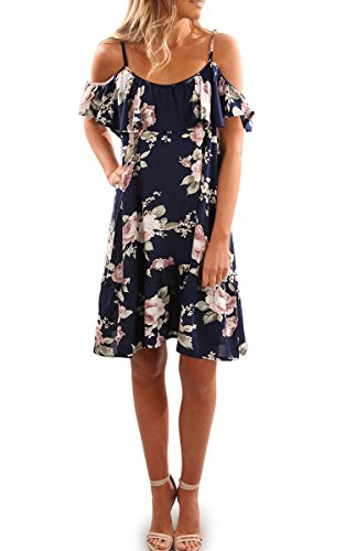 * Style: Summer Ruffle Cold Shoulder Spaghetti Strap Floral Casual Dress
