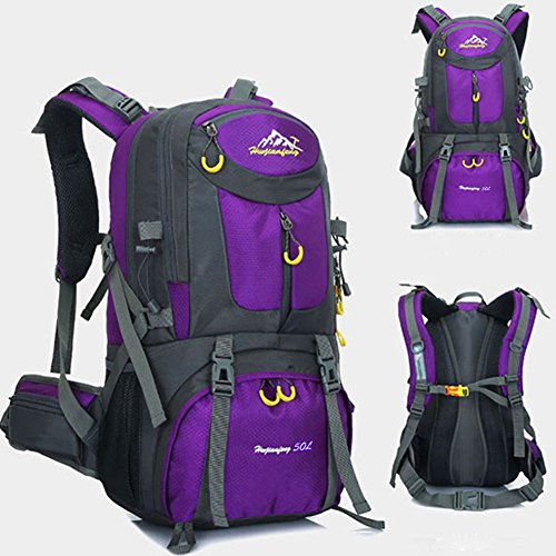 -. Brand : Holidayli -. Feature : With strong hanging system to carry more items. / Crafted from water resistant and tear resistant nylon fabric, very durable. / Adjustable chest belt and waist belt. Rain cover stored in a bottom pocket. / Features spacious main compartment and numerous pouches with large capacity. / Ergonomic padded shoulder straps and back support for best ventilation and easing burden. -. IsAutographed : 0 -. IsMemorabilia : 0 -. Label : Holidayli -. Manufacturer : Holidayli -. MPN : HL258604 -. PartNumber : HL258604 -. ProductGroup : Sports -. ProductTypeName : OUTDOOR_RECREATION_PRODUCT -. Publisher : Holidayli -. Studio : Holidayli -. Title : Holidayli 50L Unisex Outdoor Sports Rucksack Waterproof Backpack Daypack Bags for Men Women Hiking Trekking Camping Travel