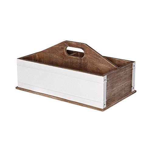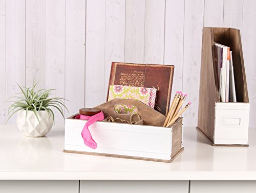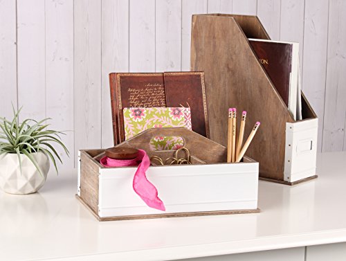 Kate and Laurel Industrious Desktop Office Supply Caddy Organizer, Rustic Wood and White