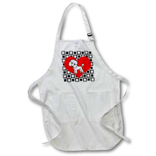3dRose apr_31194_2 I Love Dogs White Poodle Medium Length Apron with Pouch Pockets, 22 by 24"