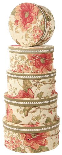 JENNIFER TAYLOR BRIANZA 5-PIECE SET HAT BOX, LARGEST 15-1/2-INCH DIAMETER BY 7-INCH HEIGHT