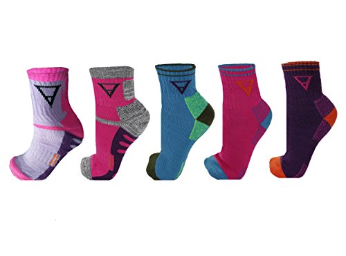 -. Feature : SIZING - Small/Med (M:5-10, W: 6-11 ) , Large (M:11+, W:12+) KEEP YOUR FEET WARM, DRY + COMFORTABLE- On hot summer runs or cold weather skiing, this sock will meet all your outdoor active wear needs. Padded soles add cushion and elastic binds snly to your feet and legs so you never have to think about your feet while you enjoy the great outdoors. / STOP BLISTERS AND STINKY FOOT ODOR - Our antibacterial moisture-wicking technology eliminates bacteria growth, keeping your feet dry, odor-free, and unbelievably comfortable on long hikes. / ULTIMATE COMFORT + FIT - This wool/nylon blend is thick enough to keep you warm without making you overheated. Snug around your foot, arches, and ankles, you won't worry about the socks sliding in your boots, causing painful blisters or hotspots. / MORE DURABLE THAN THE COMPETITION- Durable enough to survive your washer and dryer or a quick rinse in the river, caring for these socks is simple. You won't have to bring extra pairs of socks on your trip with our quick drying material. / A GUARANTEE WE STAND BEHIND - Our hiking socks are designed and tailored for the hiker in you. We guarantee you'll love your socks or we'll send you another pair. No questions asked, just a prompt and courteous refund