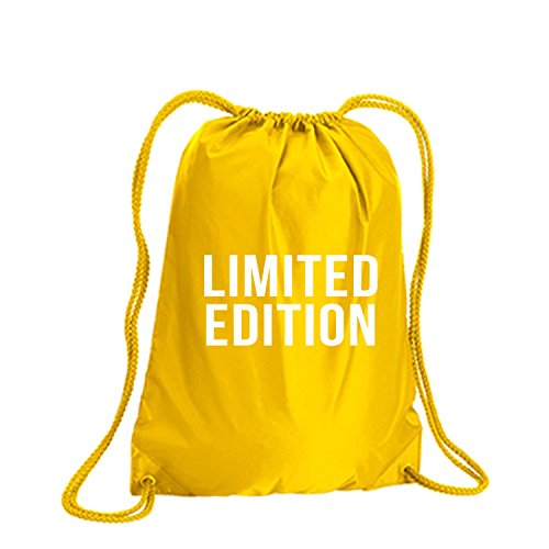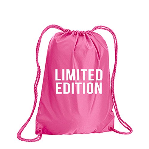 Product Description This durable and stylish nylon tote features "LIMITED EDITION" on a cinch pack tote with white ink. Bag comes in small and large sizes and is made of a durable 210 Denier nylon and has color-matched draw cords. Printed in the USA on an imported bag. 0
