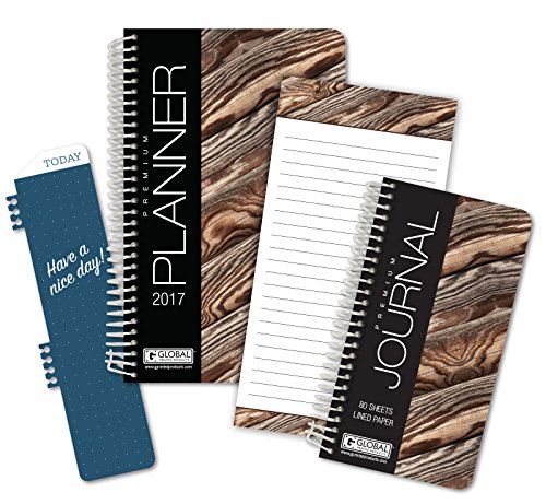 -. Title : Fashion Daily Planner Set - Includes 14 Month 2017 Calendar Year (5.5" x 8") -- Bonus Clip-in Bookmark -- 3.5" x 6.5" Bonus Journal -- 4"x8" Bonus Notepad [Woodgrain - Marbled]