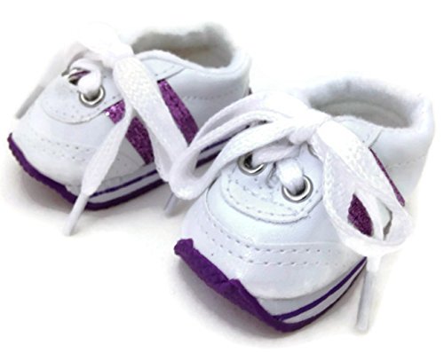 -. Feature : 18 inch Doll Shoes-White with Purple Stripes Mini Sketz Tennis Shoes-Fits 18 inch American Girl Dolls / Tie Closure / 3 inches long / Made to fit 18 Inch dolls such as American Girl, Madame Alexander, Our Generation, etc. / Doll not included