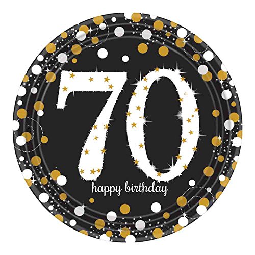-. Feature : Sparkling Celebration Collection! 70th Birthday Paper Plates / Pack of 8 attractive Black & Silver & Gold Plates / Approx 23cm diameter / Sparkling P.R.Ismatic Finish / Matching Tableware, Decorations & Accessories Available