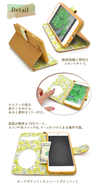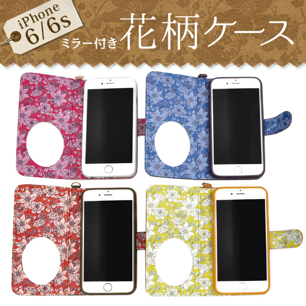 iPhone 6/6sミラー付き花柄ケース。
