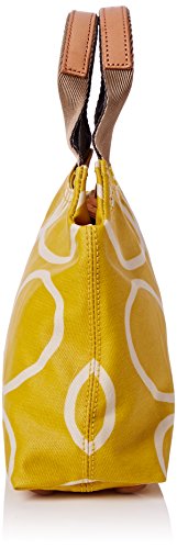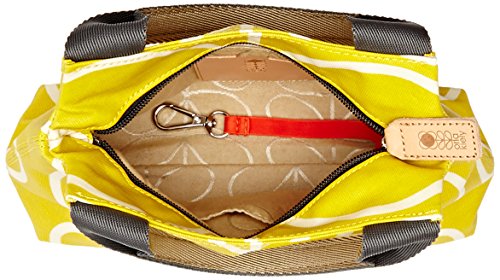 Matte laminated shoulder bag in the 'giant linear stem' print with leather trims and double sided webbing handles and contrast colored zip closure. Inside details include linear stem jacquard lining, small leather logo card holder pocket, zip pocket, elasticated key chain and mobile slip pocket. Silver colored hardware. Handles measure 47 cm from top edge of the bag.