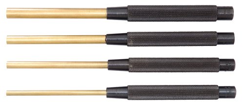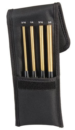 Starrett SB248Z Extended Length Brass Drive Pin Punch 4-Piece Set, 3/16"-3/8" Pin Diameters, 8" Overall Length, 3-1/2" Pin Length, In Fabric Pouch