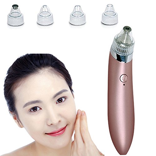Blackhead Remover ,Luollove Facial Pores Cleanser with Four Shapes of Probes Portable Electric Cleanser with USB Charge (Rose Gold)
