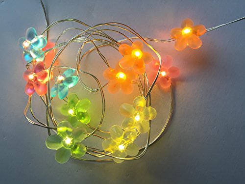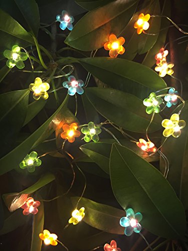 B/O Flower String Lights Warm White Color LED's on a Flexible, Shapeable Silver Copper Wire-LED String Light With 20 Individual Mounted LED's