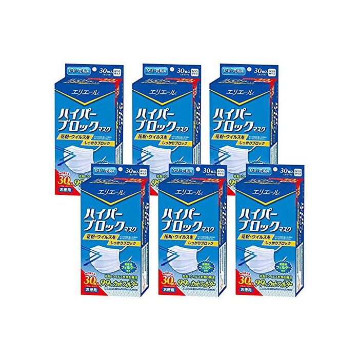 원본상품명: 【セット品】エリエ?ル ハイパ?ブロックマスク かぜ花粉用 30枚入 ×6個