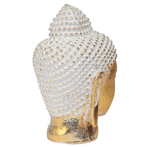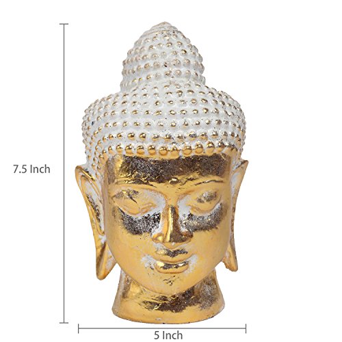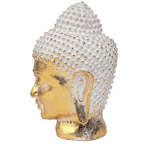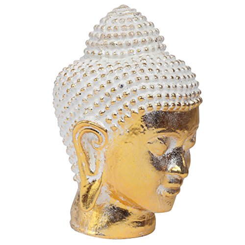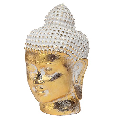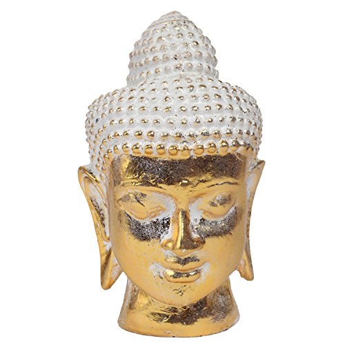 Studio : MyGift Publisher : MyGift Binding : Kitchen Product Description Add an element of peace and relaxation to your home, garden, office or meditation space with this enchanting gold Buddha head statue. Featuring a meditating head, this Buddha figurine adds a modern twist to an antique piece with its rustic golden finish. A polyresin construct and shiny surface allow you to easily incorporate this Asian Buddha head into any decor. **Made in Indonesia.** Approximate Dimensions (in inches): 8.0 H X 5.0 W X 5.0 D. 0 |