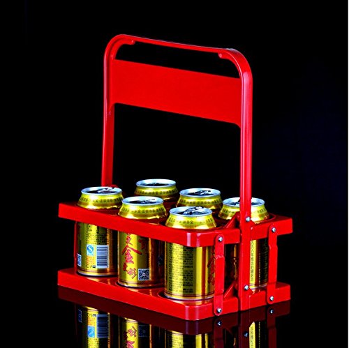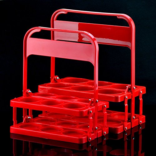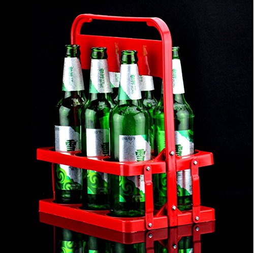 AUCH Folding Collapsible Sturdy Red Plastic Beer Bottle Holder Carrier Caddy, Fits for Beer Bottles Cans Soda, Holds 6 Bottles Diameter under 3" (Large)
