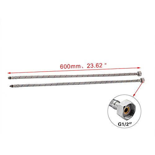 - Please note:Our faucet connector standard is 1/2", if you need 3/8", PLEASE PLEASE contact us in time after or before purchase ,we will send you 3/8" hose for free or you can buy our 3/8inch hose at a 50% discount directly Through the link above,Easy to install, with instructions attached to the package, You can install it easily hose for free