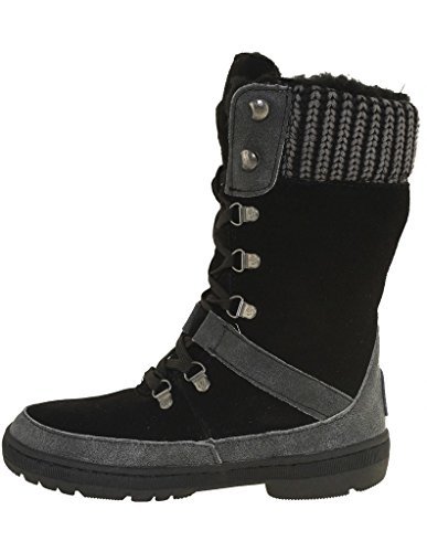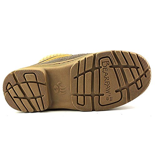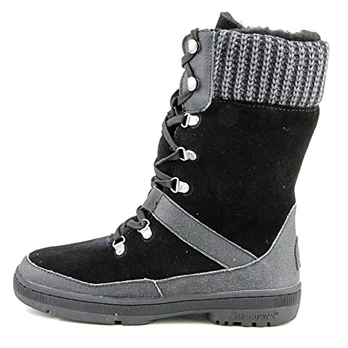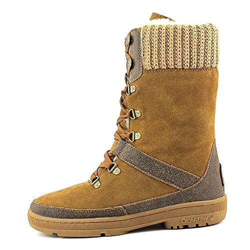 Studio : Bearpaw Publisher : Bearpaw Binding : Apparel Product Description The most stylish and comfortable lace up you'll find this season. The Serena boot is made with a cow suede upper with distressed suede trim, knit back collar, and front speed lace detail. Our classic wool blend lining, sheepskin footbed and classic TPR cupsole with stitched detail provide all the comfort you would expect from Bearpaw. Classic TPR cupsole with stitched detail. 9' tall. Material: Suede, Sheepskin. 0