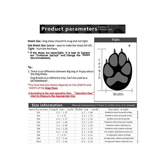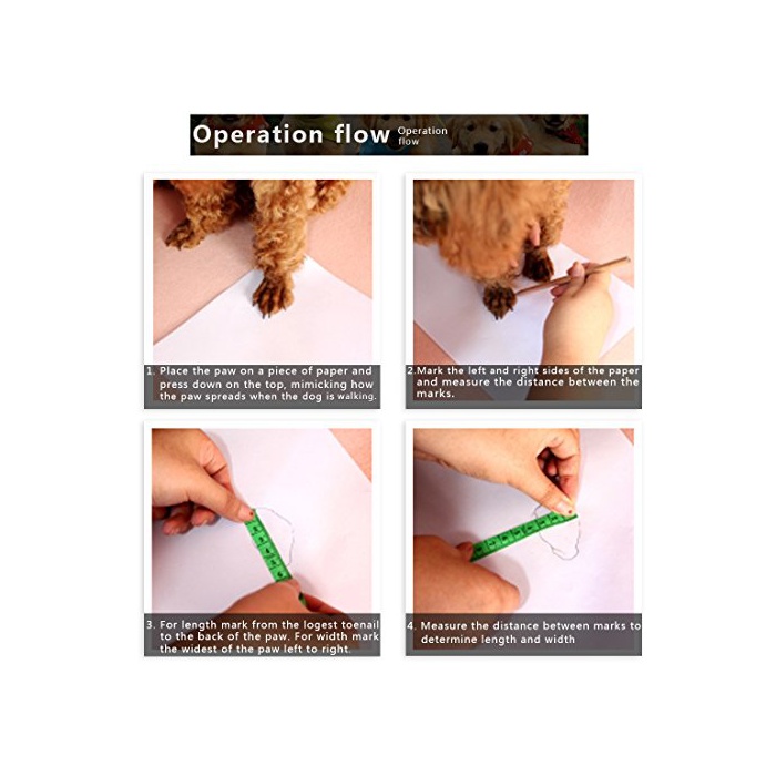사이즈:화상에 기초하고,개의 발의 길이와 폭을 측량하고, 어울리는 사이즈를 찾아냅니다.만약 사이즈가 2개의 사이즈간에 있으면,비교적에 큰 사이즈를 선택해 하십시오.실제의 사이즈의“사이즈표”를 참조해 하십시오.
