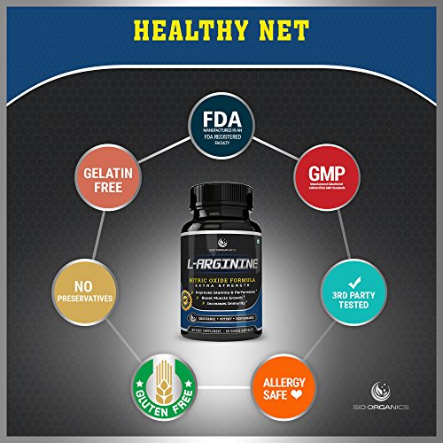 -. Feature : GREAT COMBINATION OF L-ARGININE, NIACIN & L-CITRULINE makes it a Highly Effective Potent formula to help improve stamina & performance. MADE IN THE USA: 60 Capsules. / ASSISTS GREAT WORKOUTS & SUPPORTS BLOOD FLOW - Supports Healthy Circulation so you can Train longer & faster / 3rd PARTY TESTED. Our premium product is manufactured under the most stringent Safety standards & meets GMP STANDARDS. Prepared in FDA registered facility, SID ORGANICS L-Arginine is GLUTEN FREE, GELATIN FREE & A VEGETARIAN formula. / 100% Guarantee - Our premium product has made positive changes to lifestyles of many people and we're sure you'd love it. If not, you get 60 days money back guarantee. Nothing to loose!