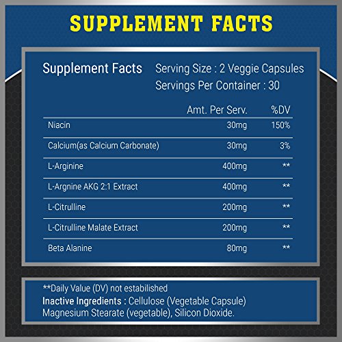 -. Title : L-Arginine I Extra Strength Amino Acids I Nitric Oxide Booster I Combined with Niacin & L-Citrulline for Muscle Growth, Heart support and Libido I Train Longer & Harder - Order Risk Free!